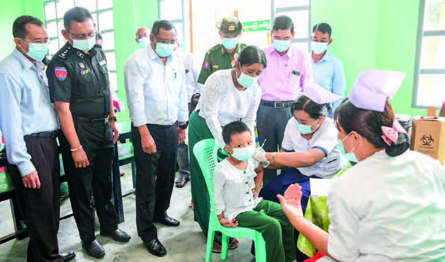 Afterwards, the chief minister and officials oversaw the vaccination activity for COVID-19 for students aged over five at the Basic Education High School in Ahlelsu Ward, the renovation work of the U Riz Mingala Suspension Bridge, and the soft crab farming business of Advanced Seafood Industries Co Ltd in Ponnagyun Township. Then, the chief minister and party observed each activity, gave suggestions and necessary instructions.