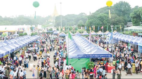 Visitors showed special interest in booths exhibiting household items, agricultural produce, construction materials, clothes, footwear, vehicle tyres, perfumes and spices produced by 29 industrial zones of the Yangon Region. They were also passionate about food stalls opened by the Republic of the Union of Myanmar Federation of Chambers of Commerce and Industry, natural fertilizers and fresh vegetables exhibited by the Yangon City Development Committee, Yangon Region Investment Committee's industrial product booths, and MSME booths representing Bago Region, Mandalay Region, Shan State and Ayeyawady Region.