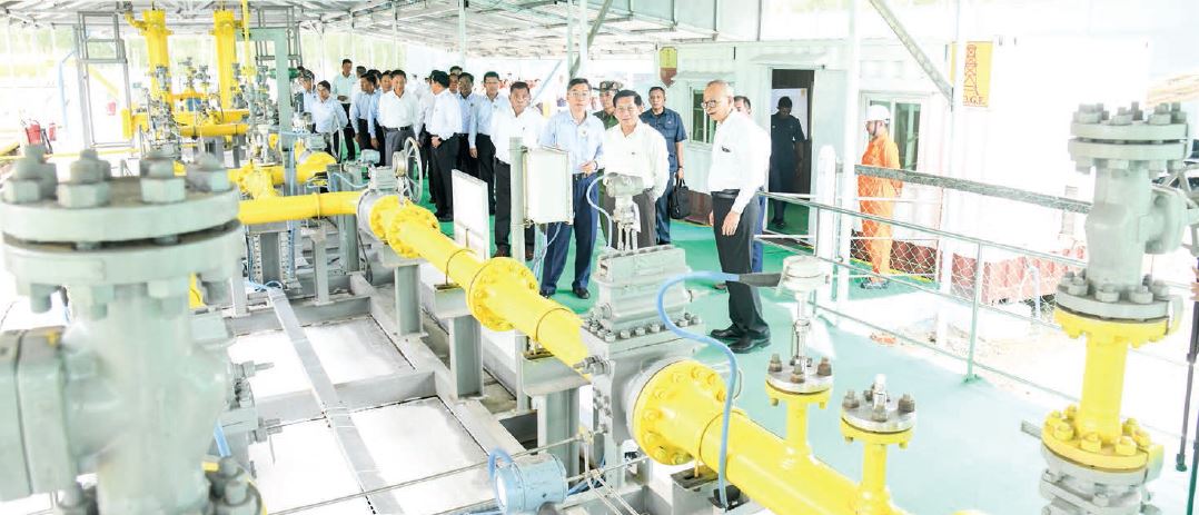 The Senior General launched the gas station at the Thaboung natural gas distribution camp and inspected the supply of natural gas through a filtration system, pressure regulation system and metering system at the camp.