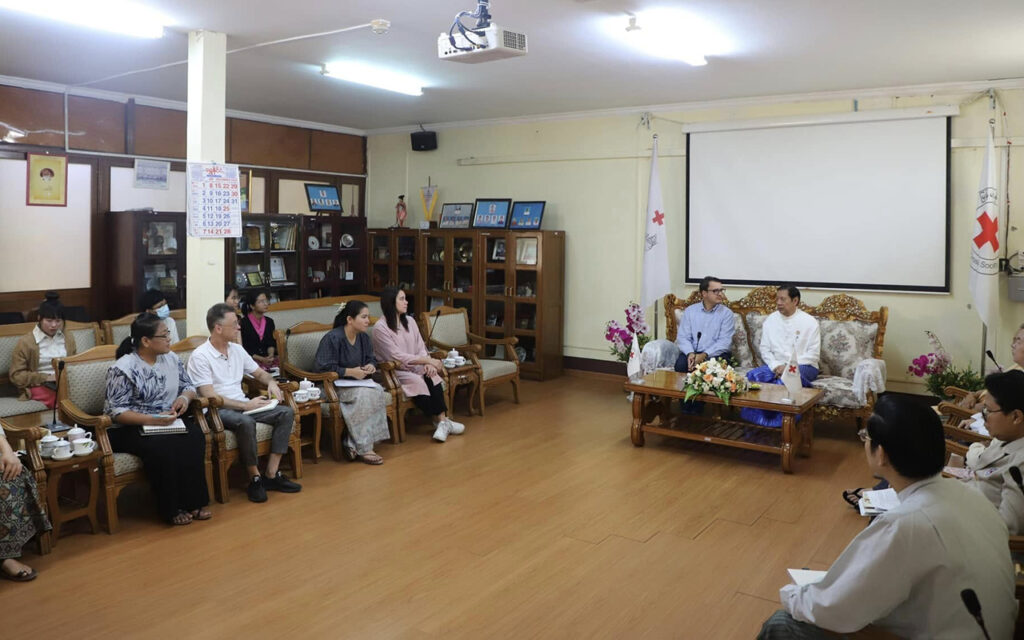 Present at the meeting were senior officials from both societies, including Myanmar Red Cross Society full-time executives Professor Dr Daw Mya Thu, Professor Dr Daw Yi Yi Tin, Professor Dr Tin Maung Hlaing, Assistant Secretary-General Daw Ei Ei Htwe, directors and Denmark Red Cross Society Country Manager Mr Fabio Beltramini.