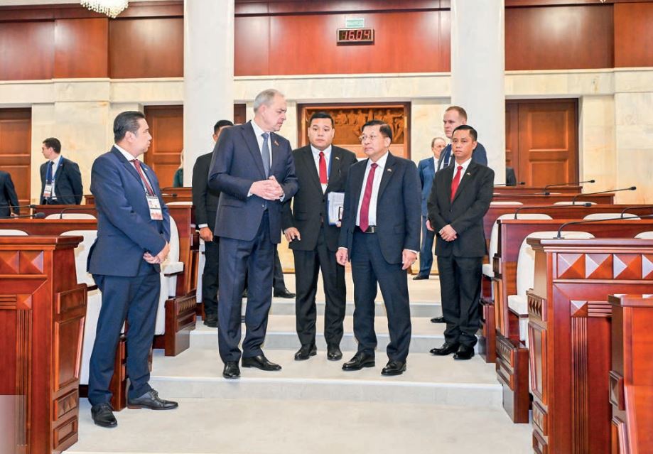 At the meeting hall, they cordially discussed cooperation between the Hluttaws of the two countries, legislation, ongoing measures to hold free and fair elections in Myanmar, observation made by Myanmar delegates in the general election of Belarus, sending of observers from Belarus to Myanmar election and further enhancement of friendship and cooperation between two Hluttaws.