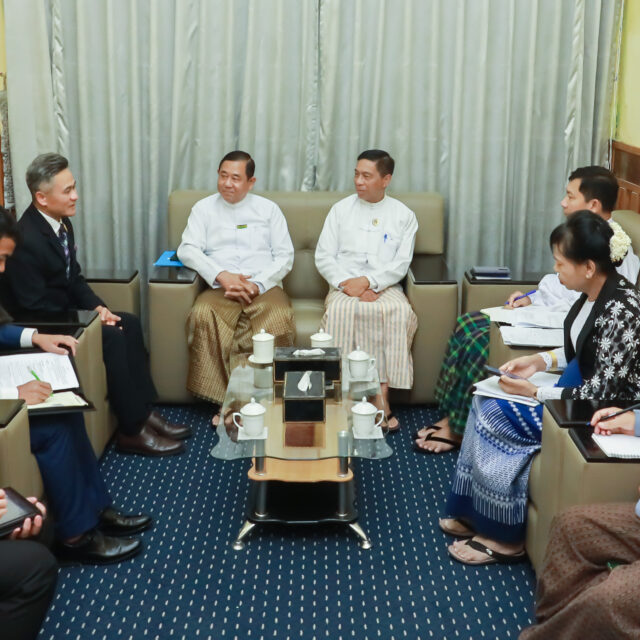 National Disaster Management Committee First Vice-Chair Union Minister for Home Affairs Lt-Gen Tun Tun Naung and Second Vice-Chair Union Minister for Social Welfare, Relief and Resettlement Dr Soe Win received Thai Ambassador to Myanmar Mr Mongkol Visitstump at the Disaster Management Centre in Nay Pyi Taw yesterday.