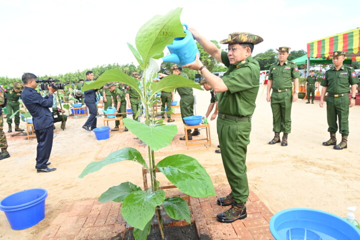 Senior General Min Aung Hlaing and his wife Daw Kyu Kyu Hla planted a teak tree while SAC Vice-Chairman Deputy Commander-in-Chief of Defence Services Commander-in-Chief (Army) Vice-Senior General Soe Win and his wife Daw Than Than Nwe, Chief of the General Staff (Army, Navy and Air) General Kyaw Swa Lin and his wife, the Commander-in-Chief (Navy) and his wife, the Commander-in-Chief (Air) and his wife, senior Tatmadaw officers from the Office of the Commander-in-Chief and their wives, Tatmadaw members and their families planted saplings in designated places.
