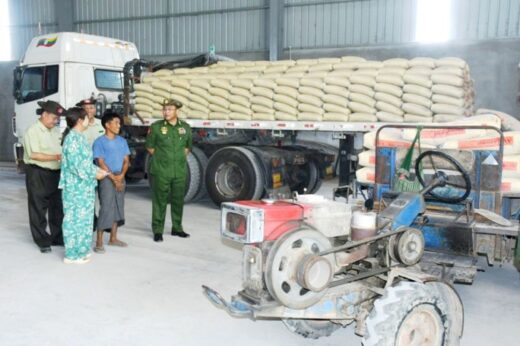 Officials also reviewed repairs and resumed operations at the TOP Myanmar woven bag factory and the Kiyo-Myanmar Healthy Fruit and Veggie Chips factory in Sintkaing Township. They visited damaged pagodas, monasteries, homes and buildings in Bilin village and other areas battered by the earthquake.