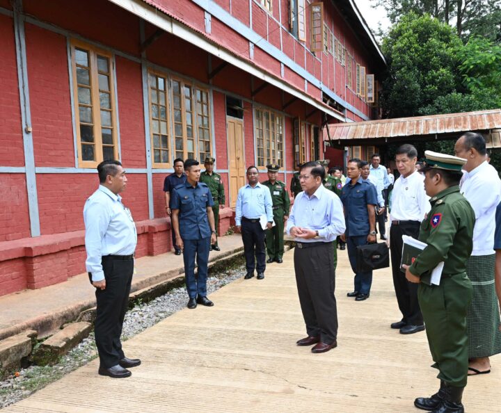 Chairman of the State Administration Council Prime Minister Senior General Min Aung Hlaing, accompanied by Council Joint Secretary General Ye Win Oo and the Chief Minister of Mandalay Region, yesterday morning inspected ensuring water sufficiency in PyinOoLwin, improvement of the education sector and beautification process.