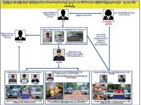 It was also discovered that the meth trafficker in Rakhine State was one Htin Htin Kyaw (a) Rakhine. Legal action has been taken against the syndicate under the law, and further investigations are ongoing to identify other offenders linked to the network. Authorities are also working under the Anti-Money Laundering Law to confiscate profits and assets gained from drug trafficking for the benefit of the public treasury.