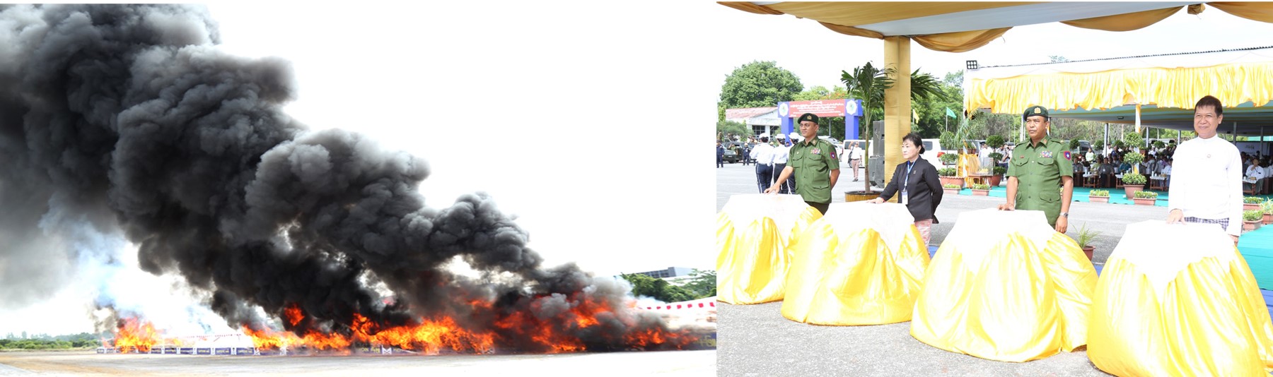 In Yangon, 25 kinds of narcotic drugs and 11 types of precursor chemicals worth over K424 billion ($118 million) that were seized in Yangon, Ayeyawady, Bago, Taninthayi, Mon, Kayin, Rakhine, were also destroyed.