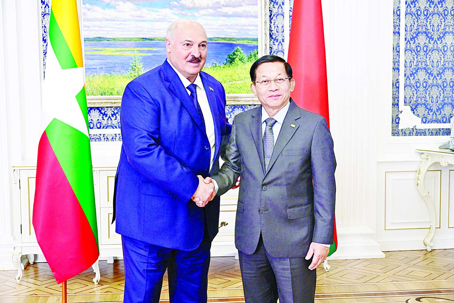 Also present at the meeting together with the Senior General were Council Joint Secretary General Ye Win Oo, SAC member General Nyo Saw, Union ministers, and the Myanmar Ambassador to Belarus. The Belarusian President was accompanied by senior officials from the Belarusian government and ministers.