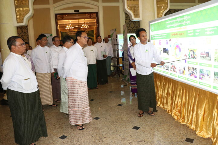 They all toured photo galleries on rural development presented by the Ministry of Cooperatives and Rural Development, Ministry of Transport and Communications, Ministry of Border Affairs, Ministry of Agriculture, Livestock and Irrigation, Ministry of Natural Resources and Environmental Conservation, Ministry of Electric Power, Ministry of Education, and Ministry of Health.