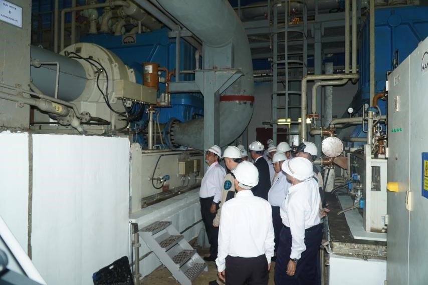 The Union minister pressed the button of No 1 Air Compressor to run properly, inspected the operation system of the air compressor, and No 2 Air Compressor.