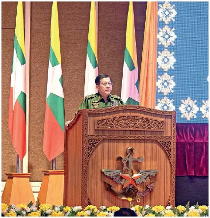 Speaking at the ceremony, the Senior General noted that the relevant government bodies were repeatedly informed and notified to investigate and take action against those responsible for such voter list irregularities. However, no resolution was made. Instead, they made attempts to convene the Hluttaw to unlawfully seize State power. Therefore, under the 2008 Constitution, Tatmadaw had to declare a state of emergency and assume the responsibilities of the State.