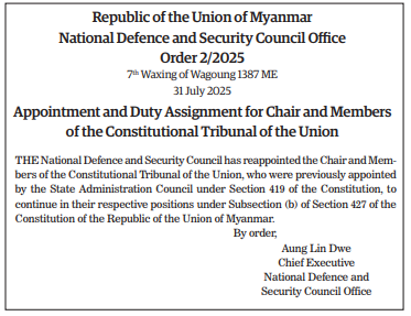 Submitted by moiuser3 on 1 August 2025 Republic of the Union of Myanmar National Defence and Security Council Office Order 2/2025 Republic of the Union of Myanmar National Defence and Security Council Office Order 2/2025