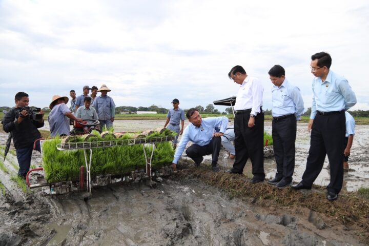 The farming machine produced by Myanmar Agricultural Machinery Factory (Inngon) can grow per acre within 1.5 hours and 1 hour and 45 minutes.