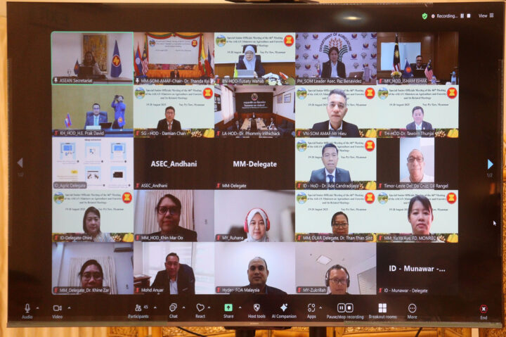 Director-General Dr Thandar Kyi of the Planning Department of the Ministry of Agriculture, Livestock and Irrigation virtually presided over the Special Senior Officials Meeting of the 46th Meeting of the ASEAN Ministers on Agriculture and Forestry and its related meetings on 19-20 August.