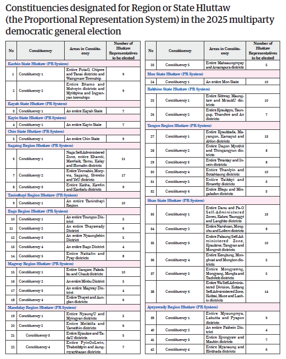 Submitted by moiuser3 on 24 August 2025 Constituencies designated for Region or State Hluttaw (the Proportional Representation System) in the 2025 multiparty democratic general election