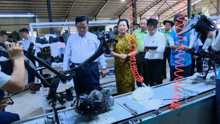 In the afternoon, the Union minister inspected production processes at the Alpha Vina concrete post factory, the Win Thamaseikta oil mill, and King Golden Dragon Co Ltd, where STAR motorcycles are assembled under the SKD system.