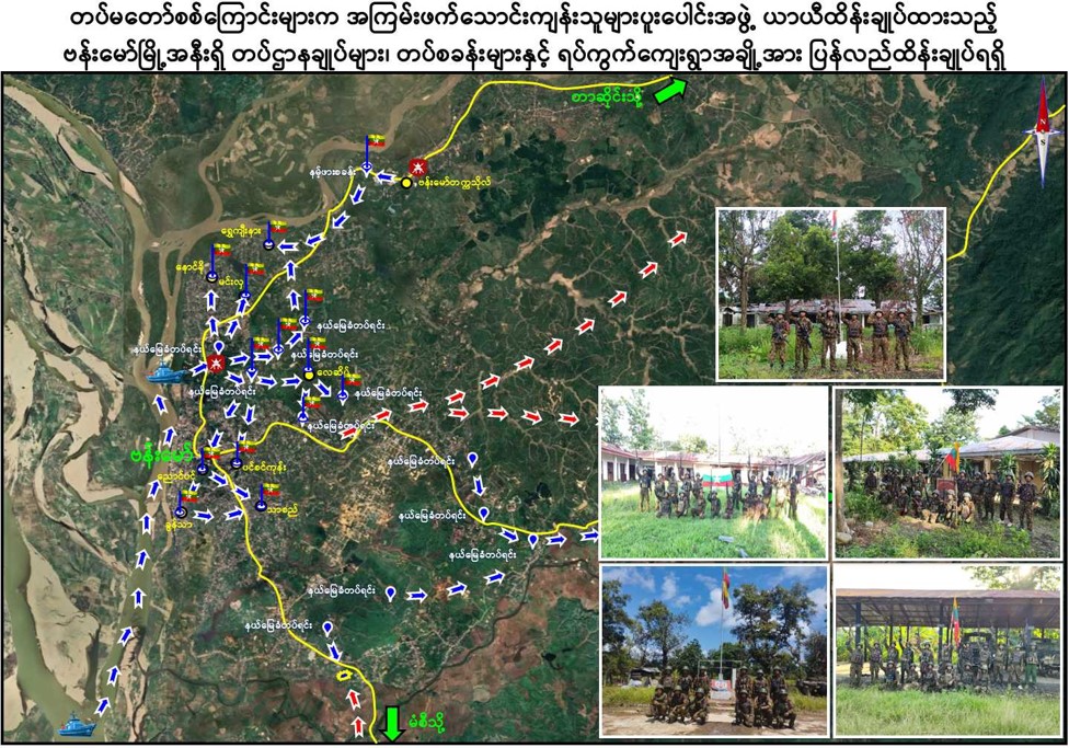 KIA terrorists, in cooperation with AA and PDF terrorists, temporarily occupied security posts and Dawphonyan, Myothit and Tasai villages in the east of Kachin State, starting from 7 March 2024, to control the Bhamo-Tasai-Myothit-Laiza route and the Bhamo-Momauk-Tasai-Laiza route, which are important for border trade in the eastern Ayeyawady River.