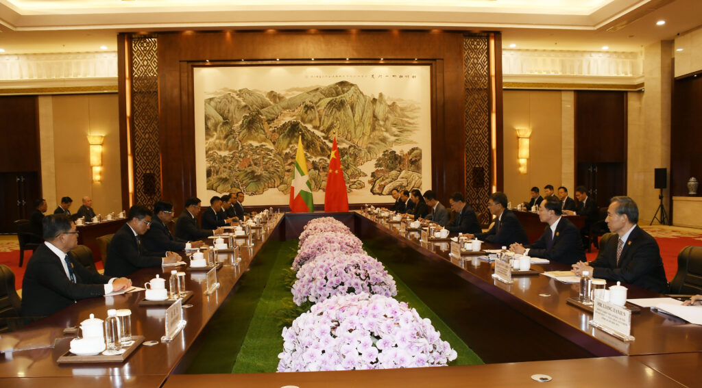 At the meeting, they frankly discussed bilateral relations and further promotion of efforts to develop the socioeconomic life of people of the two countries, enhancement of trade and investment, which contributes to each other, cooperation in anti-narcotic measures and combating human trafficking, online fraud and transnational crime, and further aid for humanitarian measures by China, including aid for the rehabilitation in the post-Mandalay earthquake.