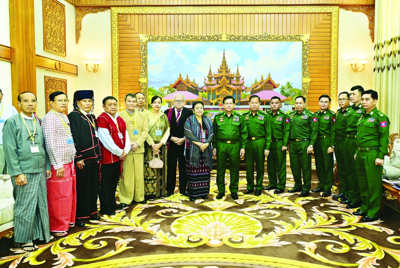 Chairman of the State Security and Peace Commission of the Republic of the Union of Myanmar and Commander-in-Chief of Defence Services Senior General Min Aung Hlaing received ethnic armed organizations which attended the peace talks at the Bayintnaung Villa in Nay Pyi Taw yesterday morning. At the meeting, the Senior General extended greetings. He stated that he had already conveyed what was necessary at the Nationwide Ceasefire Agreement (NCA) anniversary ceremony. The NCA was drafted based on consultations with ethnic groups and their respective demands. Although efforts had been made from the beginning to fully implement the NCA, progress was delayed during the tenure of the second democratic government for various reasons. During the period when they assumed responsibility, some ethnic armed organizations were still in positions where Tatmadaw was serving the State duties, which hindered continued negotiations and slowed the peace process. He emphasized that they are committed to implementing the peace process as quickly as possible. He continued that, during the intervening periods, he personally and through his delegation held discussions with ethnic armed organizations. He also expressed agreement regarding the amendment to the Constitution, noting that certain updates are necessary to reflect the current era. Accordingly, meetings were held with the responsible authorities to discuss constitutional amendment work. He emphasized that, just as preliminary discussions are needed, approval in the Hluttaw is also required to enact the amendments. He expressed gratitude to all who came forward to cooperate in reviving the momentum of the NCA and stressed that everyone must work together for the good of the nation.
