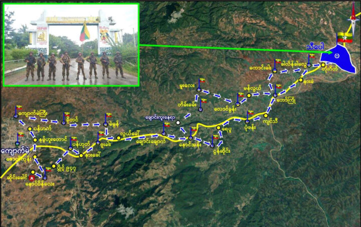 At the same time, Tatmadaw columns applied the strategic military tactics and crossed the strong current of the Nam Pan Si Stream, which was about 110 feet wide, 12 feet deep, and flowing at around five miles per hour, from an unexpected location. They launched attacks and successfully crushed the remaining terrorist forces. As a result, they managed to recapture Tain Kham and Ngon Sine villages on 12 October, Mulay, Yepu, Laungkhun and Ponephan villages on 13 October, Man Lwal and Kyin Thi villages on 14 October, Bawkyo, Kaungkha and Nakhe villages on 15 October and Hsipaw toll gate through Khar Lain Khar Lway villages on 16 October.