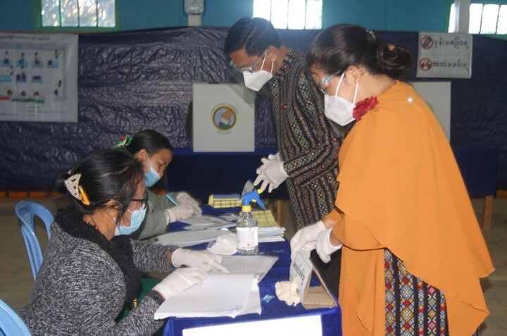 Officials from township election sub-commission, polling station heads and staff, polling station securities and volunteers provided necessary things to the voters so that they can vote safely at the polling stations in accordance with COVID-19 guidelines of the Ministry of Health and Sports and not to spread COVID-19 infection.