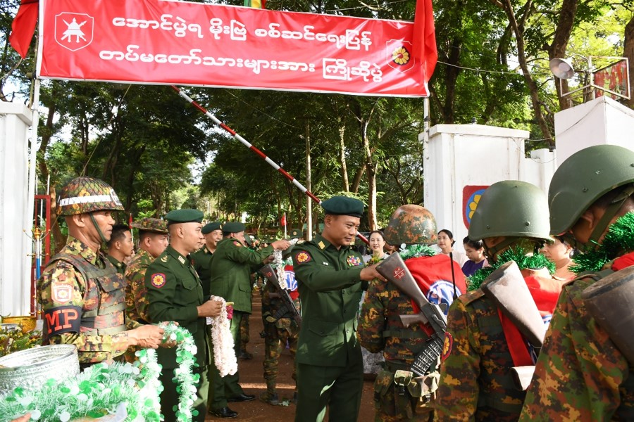 Tatmadaw members who fought bravely on the frontlines and achieved successive victories were warmly welcomed on their victorious return. A ceremony to welcome and honour them took place on 4 November at their local military base in Mongpong.
