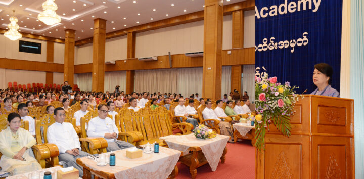 In her address, the Union Minister said that the Naypyitaw State Academy was established in the capital on 9 November 2022 with the aim of turning out intellectuals and professionals, promoting creativity and innovation, and advancing the quality of higher education. The academy initially opened in the 2022-2023 academic year with four faculties Arts, Science, Economics, and Law offering twelve specialized courses to 126 students.