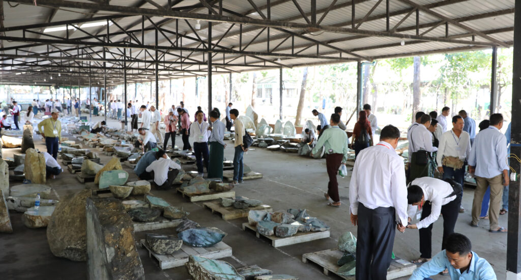 A total of 5,085 jade lots from Groups A, B and C are being sold through the open tender system on a day-to-day basis. A total of 754 jade lots out of 1,000 were sold on the fifth day, 716 jade lots out of 1,000 were sold on the sixth day and 640 jade lots out of 900 were sold on the seventh day. The remaining jade lots will continue to be sold to domestic and foreign merchants at the Maniyadana Jade Hall until 26 November.