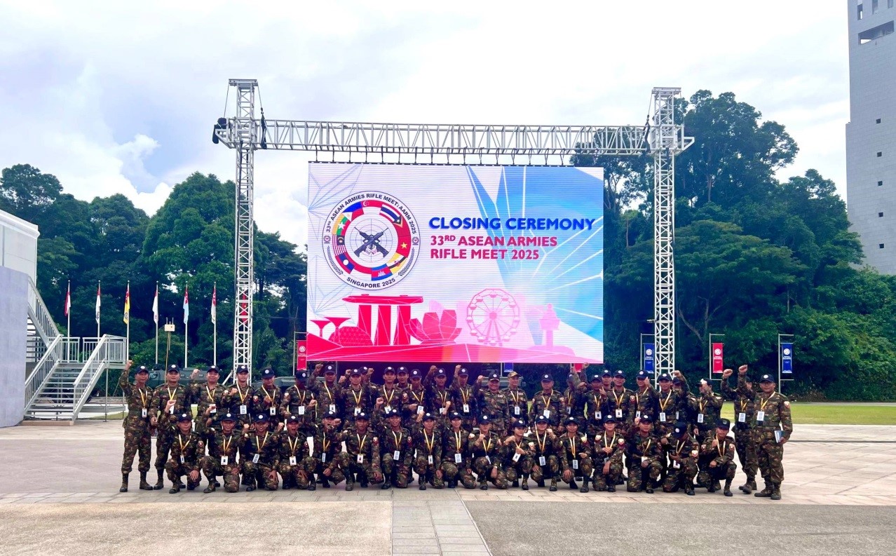 General Kyaw Swa Lin again participated in the Novelty Shoot and attended the closing ceremony of the 33rd ASEAN Armies Rifle Meet (33rd AARM) together with ASEAN army chiefs and delegation leaders. He also met cordially with members of the Myanmar shooting team competing in the event, encouraged them, and posed for documentary photographs. In the evening, the General and the Myanmar Tatmadaw delegation attended the farewell dinner of the 33rd AARM together with ASEAN army chiefs and delegation leaders.