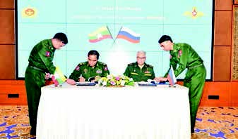 THE second day of the third meeting of the Myanmar-Russia Joint Counter-Terrorism Committee was held yesterday at the Jasmine Hotel in Nay Pyi Taw. Present at the meeting were Lt-Gen Than Htike from the Office of the Commander-in-Chief (Army) and senior Tatmadaw officers, who are committee members, Colonel-General Aleksandr Anatolyevich Matovnikov, Deputy Commander-in-Chief of the Ground Forces of the Russian Federation and committee members. The two parties exchanged views on Myanmar-Russia cooperation in counter-terrorism, and Co-chairs Lt-Gen Than Htike and Colonel-General Aleksandr Anatolyevich Matovnikov reviewed the discussion and concluded the meeting. The co-chairs signed the agreements, exchanged gifts, and had a documentary photo taken together with the attendees.