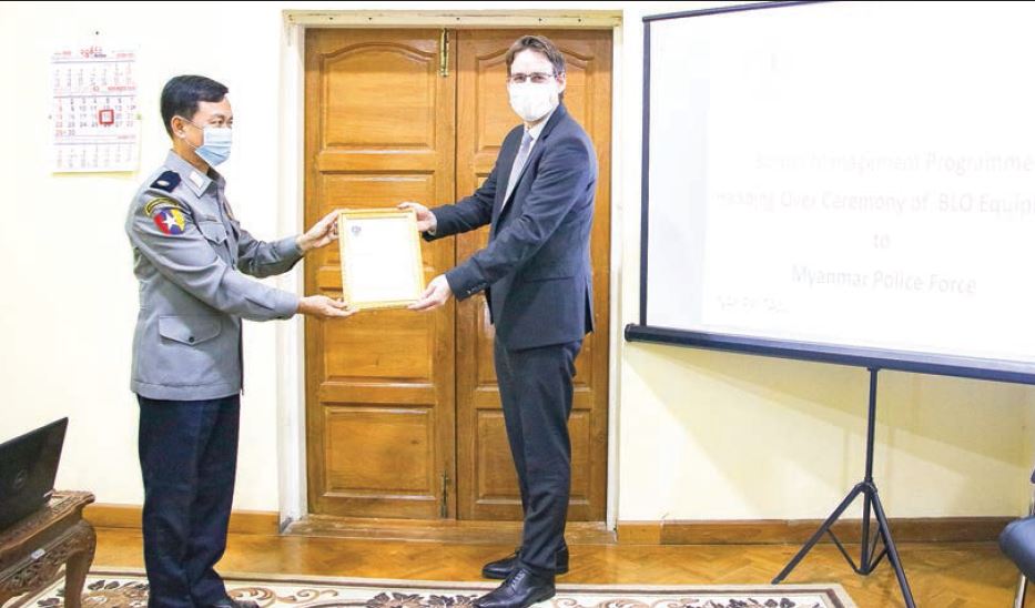 The handover, which took place at the Myanmar Police Force headquarters, followed a meeting between Mr Hofmann and Major-General Soe Tint Naing, Deputy Minister at the Ministry of Home Affairs, where they discussed general cooperation between Myanmar and UNODC.