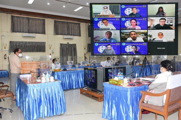 Union Minister Dr Myint Htwe firstly discussed the high demand of COVID-19 vaccine all over the world despite the achievement of an effective vaccine, inability to immunize across the nation in the short term, the use of digital platforms as soon as possible due to the genetic mutation of virus which can cause long existence of the virus in the world and the establishment of new digital platforms to accelerate the preventive measures of COVID-19.