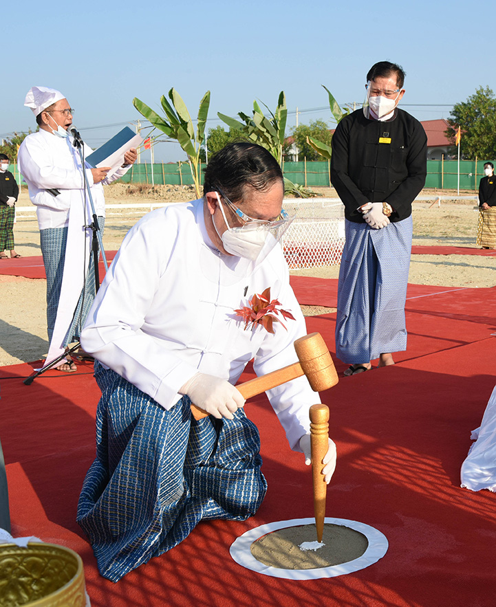 Chief Justice of the Union U Htun Htun Oo attended the stake-driving ceremony that took place in line with COVID-19 health guidelines set by the Ministry of Health and Sports.