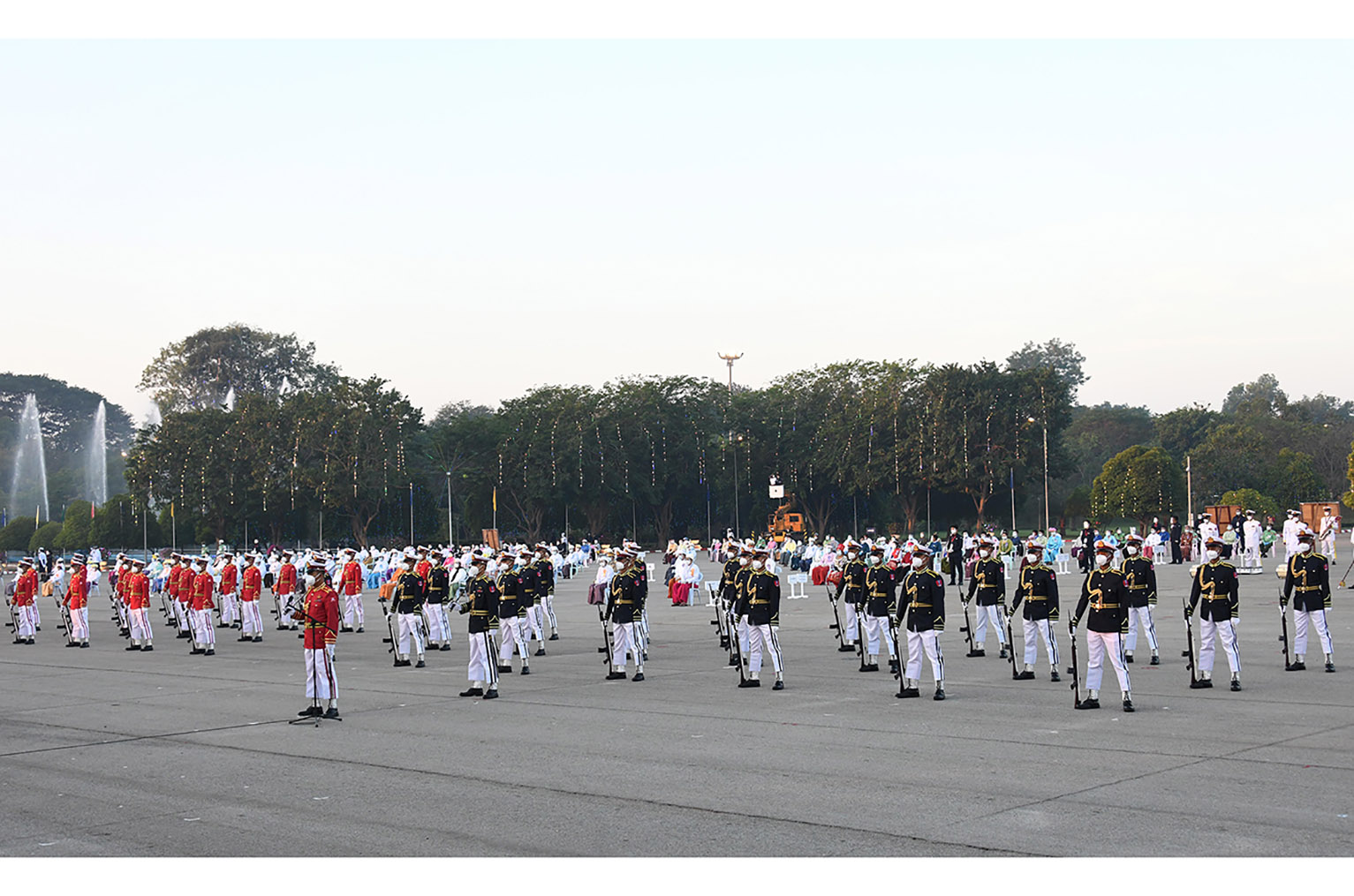 At 6 am, those present at the ceremony were Pyithu Hluttaw Deputy Speaker U Tun Tun Hein, Amyotha Hluttaw Deputy Speaker U Aye Tha Aung, Union Ministers, Union Attorney-General, Union Auditor-General, Chairman of the Union Civil Service Board, Chairman of Nay Pyi Taw Council, Governor of Central Bank of Myanmar, Acting Chairman of the Anti-Corruption Commission, Chairman of Myanmar National Human Rights Commission, senior Tatmadaw officers, judges from the Supreme Court of the Union, the Myanmar Constitutional Tribunal members, Union Election Commission members, Commander of Nay Pyi Taw Command, Deputy Ministers, Deputy Attorney-General, members of UCSB, Nay Pyi Taw Council members, Deputy Governor of CBM, departmental heads and staff members and national people.