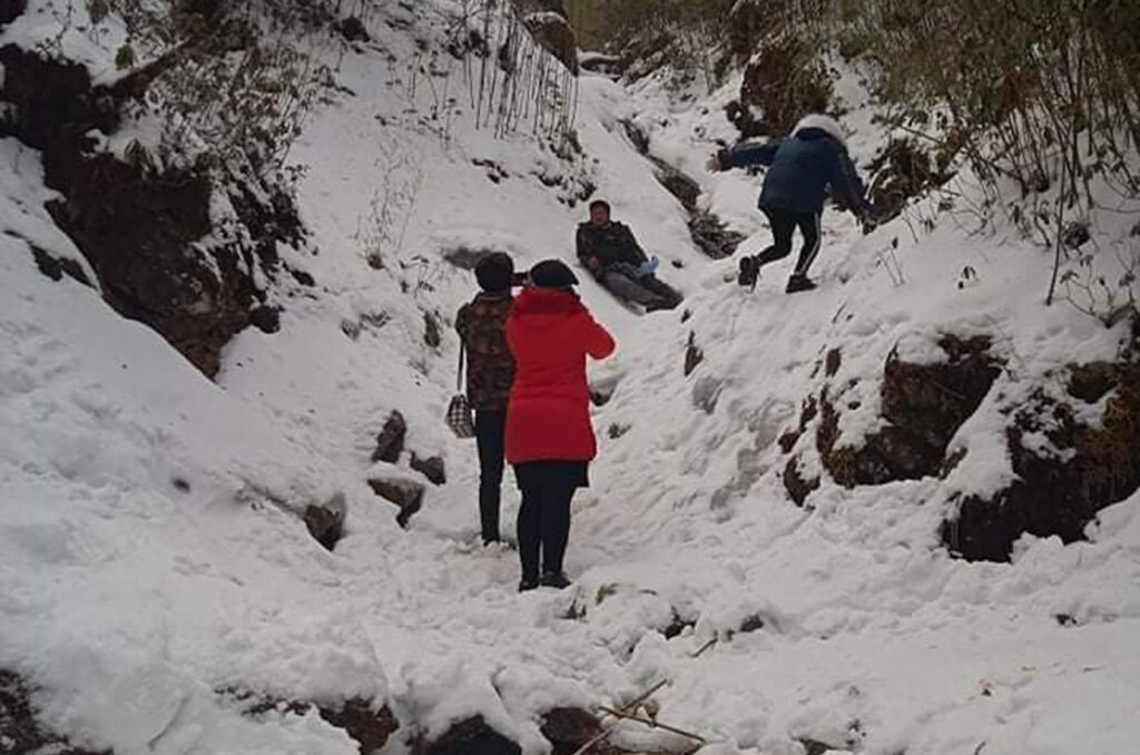 Visitors are going to Yaykhe Creek near the border post No 3 in the prominent town of Panwa, Myitkyina District, Kachin State, to enjoy winter frosts and snowfalls. After having snowfalls since 21 January, the number of visitors to the Yaykhe Creek has increased.