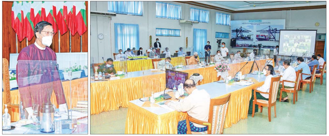 Union Minister for Transport and Communications U Thant Sin Maung, the deputy chairman of the committee, reported on the sandbanks in ThanlwinRiver in Kayah State, floods and bank erosions in Ayeyawady River, Chindwin River and other water outlets mounting silt in Setyoekya creek in Rakhine state, removing slimes from the river mouth in Thandwe, implementation of the Ayeyarwady Integrated River Basin Management Project, the timely establishment of system information data centre, the electronic navigation charts for 1,000 km of the waterway between Yangon and Mandalay, and availability of clean drinking water.