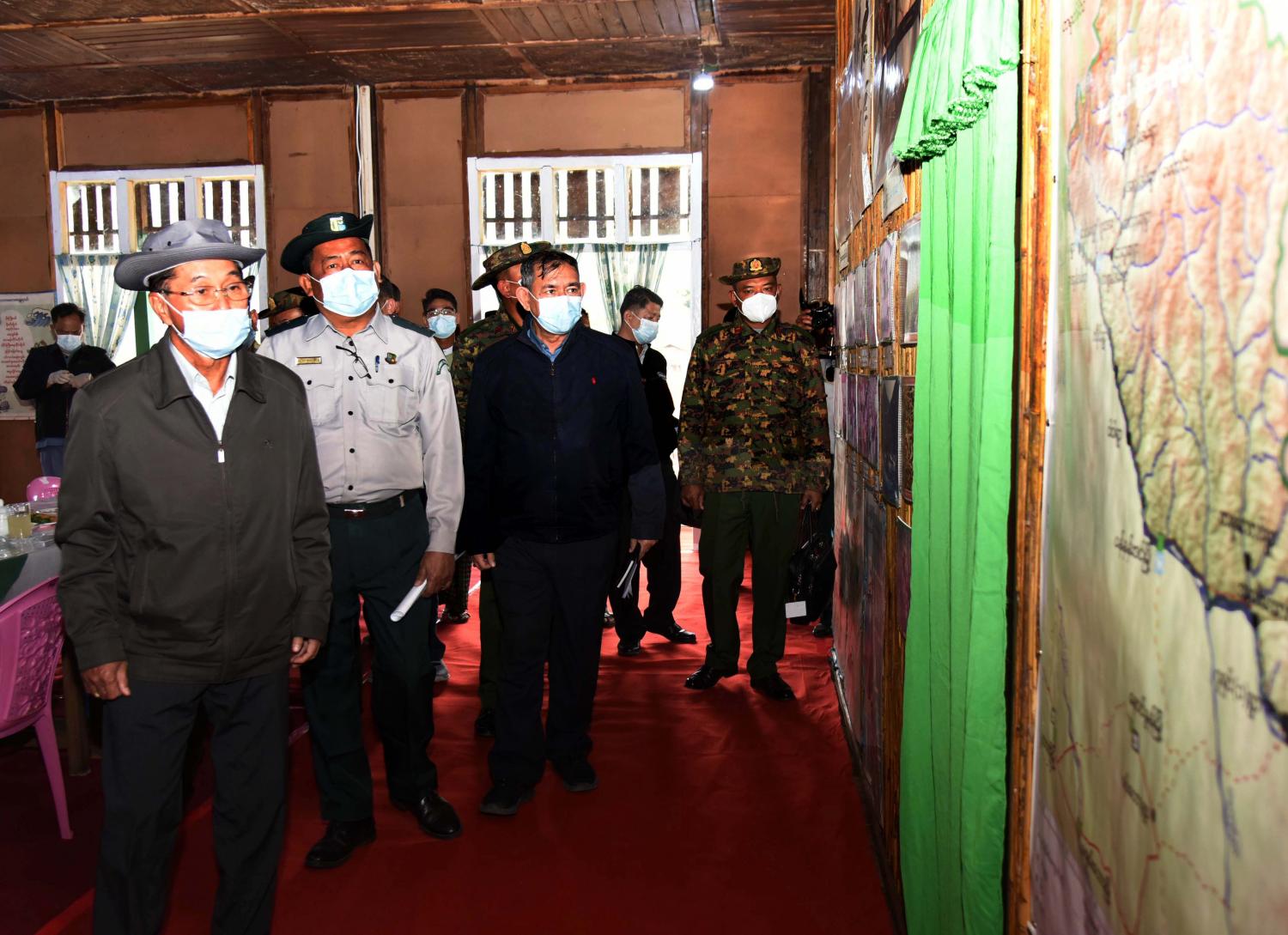 Union Minister Lt-Gen Ye Aung explained the construction projects of Putao-Nagmon-Pannandin road and Pannandin-Ngawah-Gawine road.