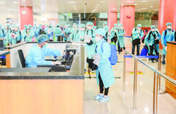 The Ministry of Labour, Immigration and Population and the Ministry of Health and Sports arranged 14-day quarantine at specific places or designated hotels, followed by the 7-day home quarantine.
