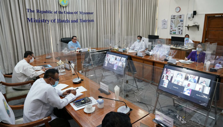 The Ministry of Hotels and Tourism held a meeting with the Myanmar Tourism Federation and its 11 associated member organizations through video conferencing in Nay Pyi Taw yesterday morning.