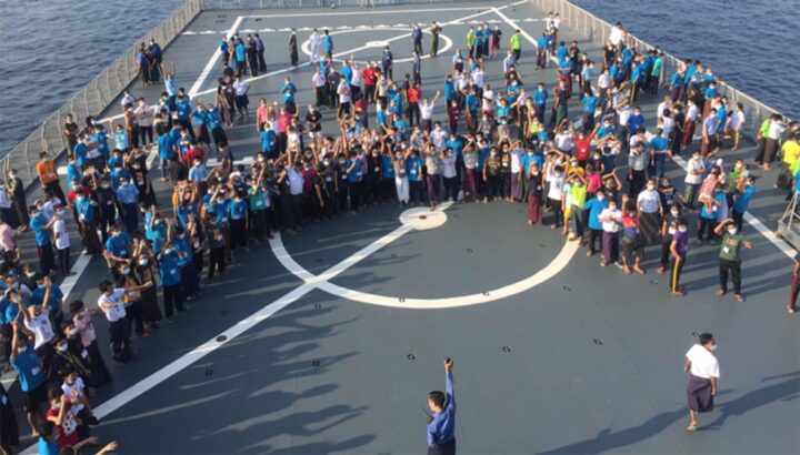 Myanmar naval vessels reached its maritime zone yesterday morning, bringing back a total of 1,086 Myanmar nationals from Malaysia.