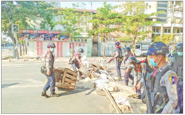 The security forces detained a total of 78 people — 49 men and 29 women in Pathein, Myaungmya, Maubin, Labutta and Ingapu townships of Ayeyawady Region and another 5 people — 4 men and 1 woman from Kawthoung, Myeik, Dawei and Pulaw townships. They also detained a total of 7 people — 6 men and 1 women in Taunggyi and Lashio of Shan State while27 people —16 men and 11 women in Hpaan, Kawkareik and Myawady of Kayin State.Similarly, the security forces dis-persed the protest crowds in Mawlamyine, Thaton, Thanbyuzayat and Ye of Mon State by using sound bombs, .12V gun, tear gas canisters. The police detained 3 men in Taungup of Rakhine State while anoth-er 3 men in Falam of Chin State. The unscrupulous groups led to mass gathering and act lawless activities by inciting the youths to attack the security forces, arrest the members, seize the firearms and block the public roads. Although the security forces conducted soft methods in solving the conflicts, they had to do security measures from a certain distance and so some of the protesters as well as the police were injured. During yesterday case, 4 men from Dawei, 1man from Thingangyun, 2 men from Bago and 1 man from Pakokku died and the respective township police stations opened cases and is conducting investigation.