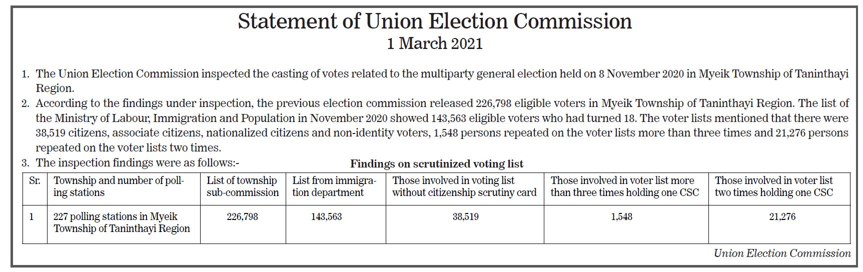 Submitted by admin on 2 March 2021 Statement of Union Election Commission 1 March 2021 #TheGlobalNewLightOfMyanmar