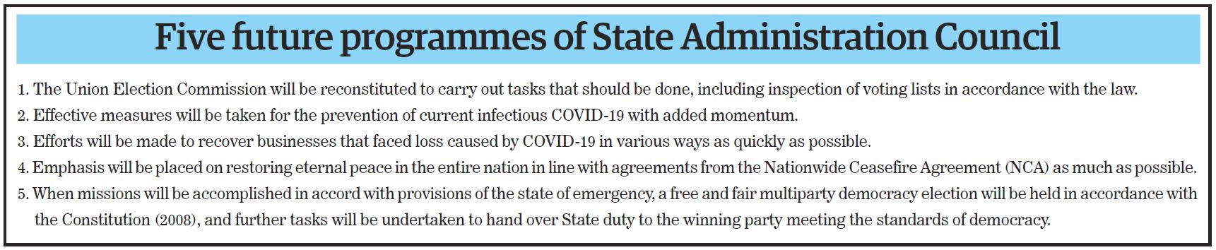 Submitted by admin on 3 March 2021 Five future programmes of State Administration Council #The_Global_New_Light_Of_Myanmar