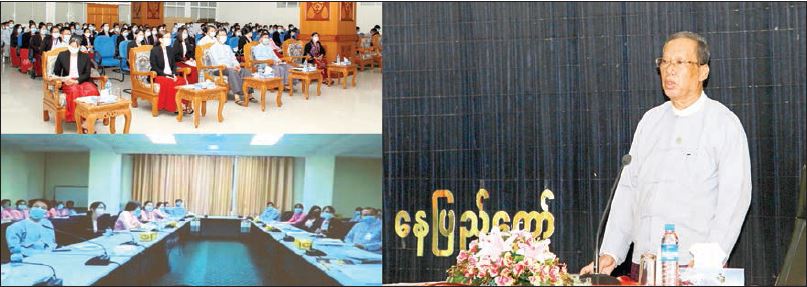During the meeting, CBM Governor U Than Nyein discussed the importance of the administration and human resources development department, control of staff under the civil services law, rules and regulations and assistance for departmental staff within the scope of the allocated budget.