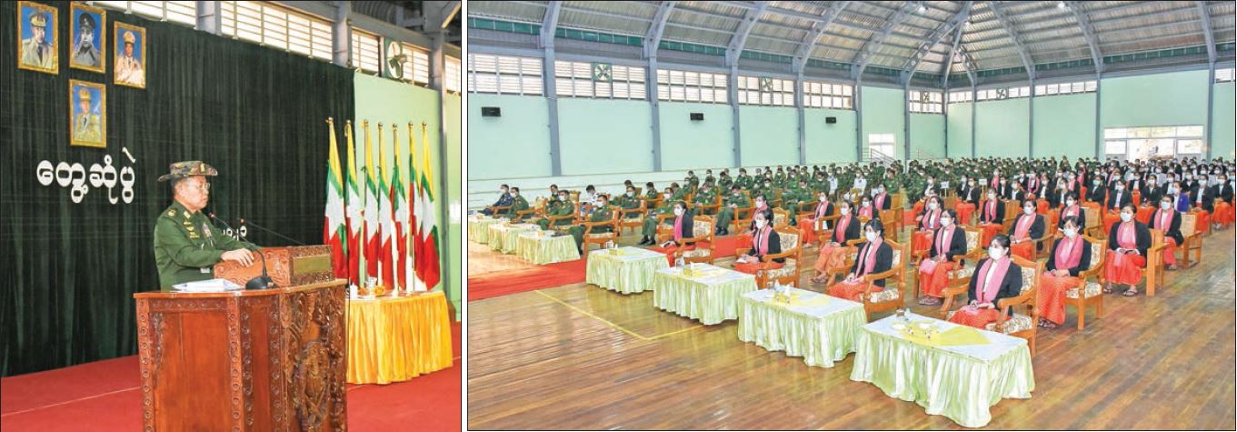 Vice-Chairman of the State Administration Council Deputy Commander- in-Chief of Defence Services Commander-in-Chief (Army) Vice-Senior General Soe Win met officers, other ranks and families of Kalaw and Aungban stations at the station hall Kalaw of Shan State (South) this evening. Also present were Lt-Gen Aung Zaw Aye from the Office of the Commander-in-Chief (Army), Chief of Staff (Air) Lt- Gen Tun Aung, senior military officers of the Office of the Commander- in-Chief (Army), Commander of Eastern Command Brig-Gen Ni Lin Aung and officers, other ranks and families of Kalaw and Aungban stations. At the meeting, the Vice-Senior General explained the situation of the canvassing campaigns of the 2020 general election, during the general election and the post-election period, a gigantic error of 10.4 million in the voter list of over 39.2 eligible million voters, the frequent demands made by the people and the political parties concerned to the Union Election Commission to solve the matter in a transparent way, the ignorance of those demands by the UEC led by U Hla Thein, the rejection of the request to hold a special session on the voter list errors by the speaker of the Hluttaw, President U Win Myint’s total rejection of the final request to solve the problem through the meeting of the National Defence and Security Council for two times, the refusal of a personal request to check the voter list with the newly-formed UEC, to postpone the programme to summon the new Hluttaw during the time the lists were under inspection and the President to solve the issue in time. He also said attempts were made to convene the third Hluttaw without clearing all the doubts about the error in the voter list that exceeded 10.4 million in numbers with the intention of taking over the three organs of power through unfair means. Hence, the Tatmadaw had to declare the state of emergency under Sections 417 and 418 without revoking the 2008 Constitution to serve the duties of the State during the designated period. The Tatmadaw set up the State Administration Council, adopted the five future work programmes and is implementing them. Security forces are using the minimum force and rules at the lowest level in controlling the anarchic riots in accord with the 1956 Law on the riot manual of the government of the Union of Myanmar and the 2015 mob control manual of the Myanmar Police Force of the Ministry of Home Affairs. Some civil servants who are misled into participating in the CDM are facing socio-economic losses. Officers, other ranks and families should have unity and security awareness. He also explained the dos and don’ts for the servicemen and their families to stay away from acts that may tarnish the image of their institution. The Vice-Senior General and party presented foodstuff and gifts to officers, other ranks and families of Kalaw and Aungban stations through the respective officials. After the meeting, the Vice-Senior General and party cordially greeted officers, other ranks and family members who attended the meeting. —MNA The Global New Light Of Myanmar
