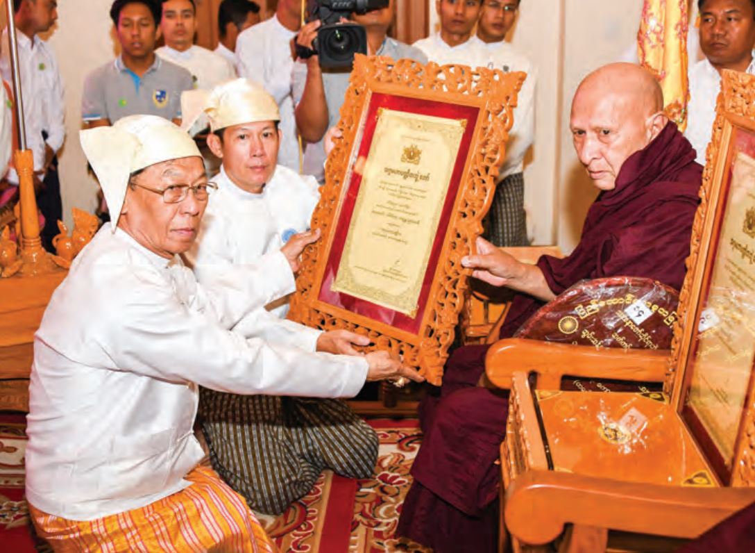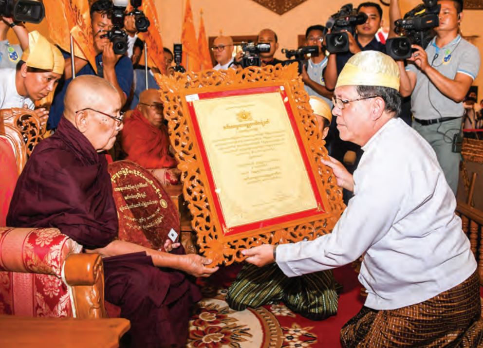 Vice President U Myint Swe and Vice President U Henry Van Thio presented similar titles to the renowned senior monks.