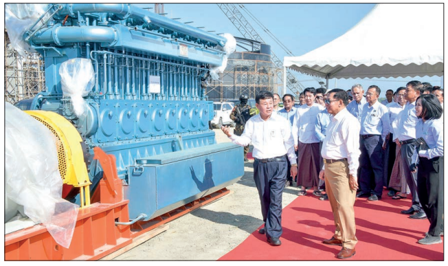 At the briefing hall, Global Earth Agro & Aqua Industry Public Co Ltd Chairman U Htay Myint reported on the implementation of fish farming-based industrial business, operation of agriculture and livestock-based industrial businesses, smart hatchery and nursery process, smart grow-out farm, construction of feedstuff factory meeting standards, seafood processing and cold storage plant, installation of machinery, construction of staff housing, offices, roads and bridges, biomass power plant, plans to produce fertilizers and pesticides, fish product production, job opportunities and staff capacity building, and needs of extending the project period.