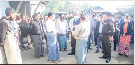 RAKHINE State Stability, Peace and Development Work Coordination Committee Chair Union Minister for Border Affairs Lt- Gen Tun Tun Naung and Union ministers along with the Rakhine State chief minister and officials inspected the Bawdupha IDP camp in Sittway township on 8 February and coordinated with responsible personnel to fulfil the needs of the displaced persons at the camp.