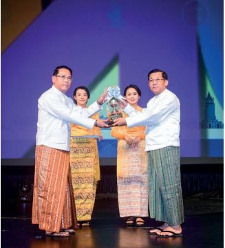 The Senior General presented K7.7 million as cash rewards for staff who participate in the successful presentation in the 10th ASEAN Quiz (Regional Level) on a grand scale and the Music Festival Season 2 to the Union Minister for Information.