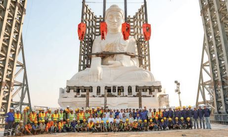 The conveyance processes were being carried out and part 4 of the Buddha image was carried towards the Buddha image combined with parts 1, 2 and 3 using Skid Rail from 1:35 am to 7:20 am on 15 February. Then, the pieces were settled on the jewelled throne using the Hydraulic Jack successfully at 4:5pm on the same day.